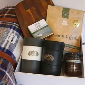 Ideal for sparking romance, fuelling outdoor adventures, or enhancing boat outings, the Chill and Cheers gift box is a treasure trove of delights for wining, dining, and entertaining. Keep your beverages icy cold with two Toadfish beer coolers, featuring spill-proof suction technology. With a chopping board, rosemary and garlic crackers, lime chutney, and chocolate, you can create a culinary masterpiece. Plus, the picnic blanket means you can plonk the goods down wherever you decide to dine.