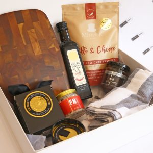 Your homies, clients or your family have just staked their claim in fresh new digs – whether it’s hot off the construction press or just new to them, they’re in for a treat! We’ve jazzed up this housewarming gift with snazzy tea towels, oils, chutneys, and crackers to orchestrate a mouthwatering housewarming banquet, a chopping board for culinary adventures, and a candle to give that ‘just painted’ or ‘previous owner’ funk the boot. It’s the ultimate recipe for home sweet home!